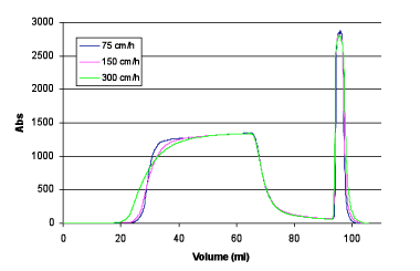 Test: BSA capacity vs linear velocity
